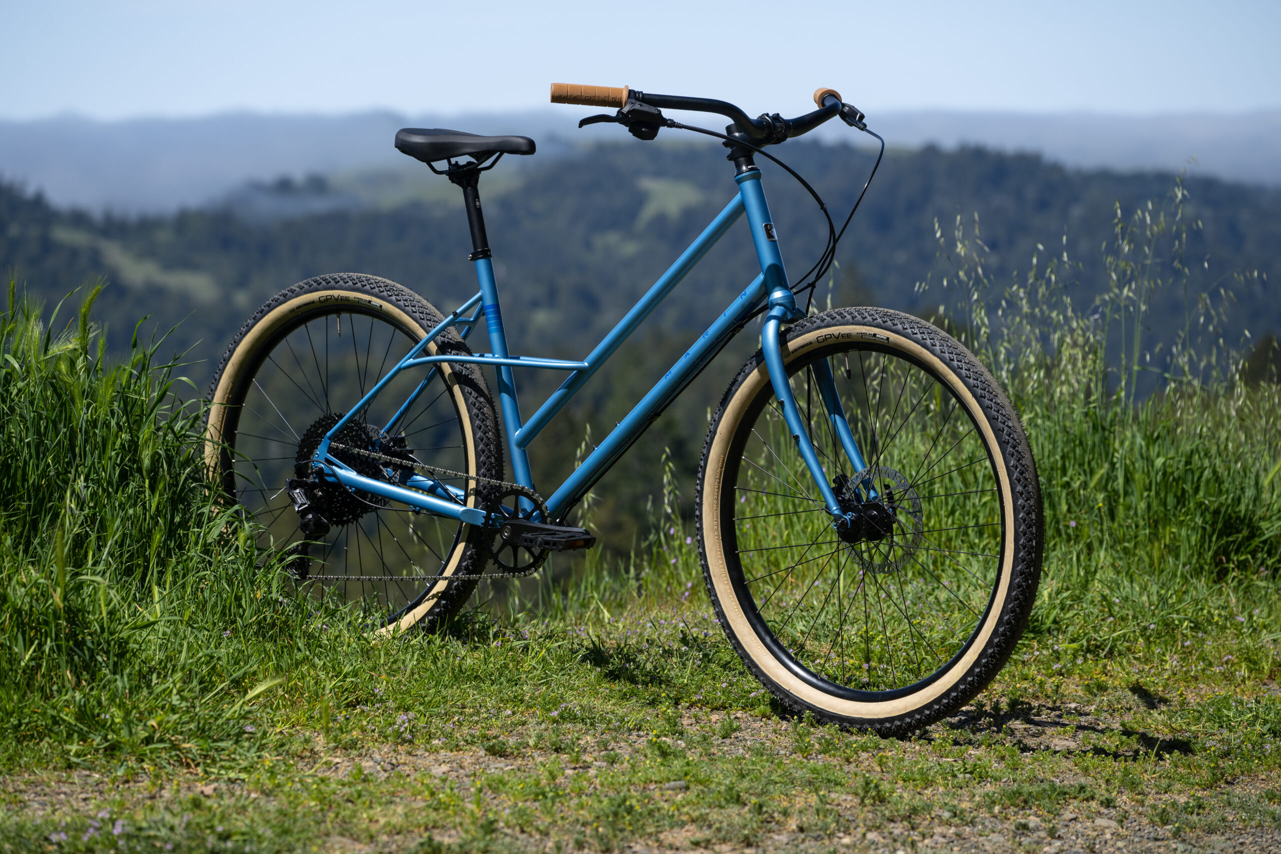 The Marin Larkspur 1 is built around a Series 2 butted CrMo step-through frame, a curved CrMo fork and 27.5” wheels. It has high volume 2.35” Vee Tire Co tires, a microSHIFT 10-speed drivetrain, Tektro hydraulic brakes and plenty of reliable Marin components to complete the package.